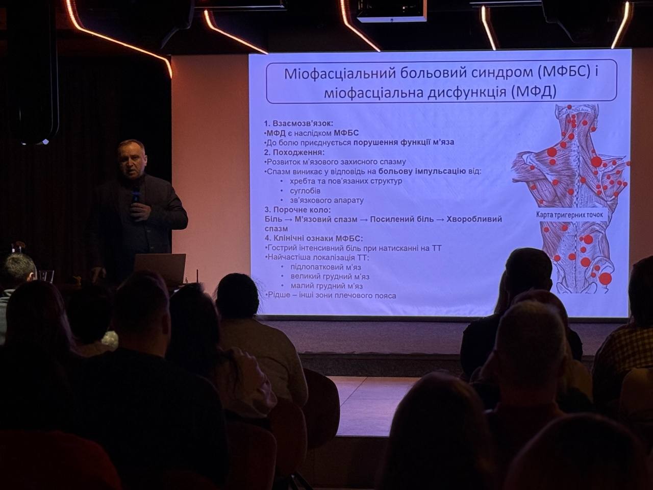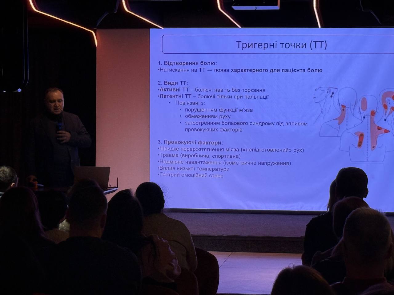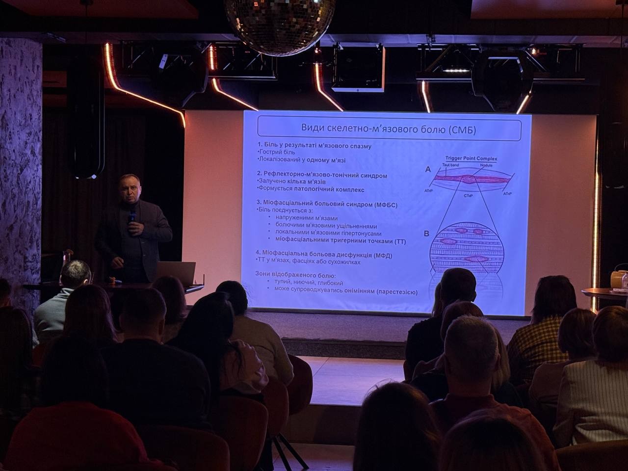 Під час лекційної частини учасники отримали систематизовані знання про механізми формування міофасціального болю, роль тригерних точок у виникненні больового синдрому та сучасні підходи до клінічної діагностики. Окрему увагу було приділено показанням і протипоказанням до локальної ін’єкційної терапії, питанням безпеки процедур та доказовій базі ефективності методу.