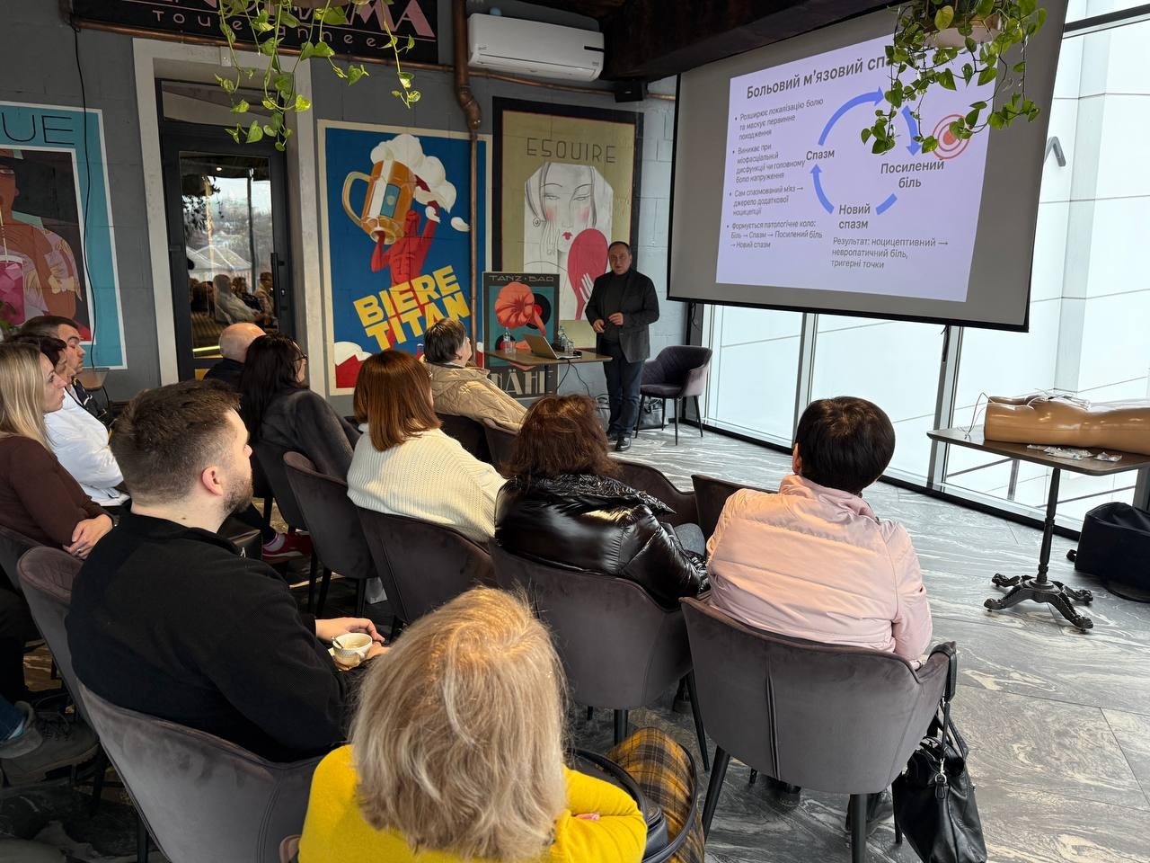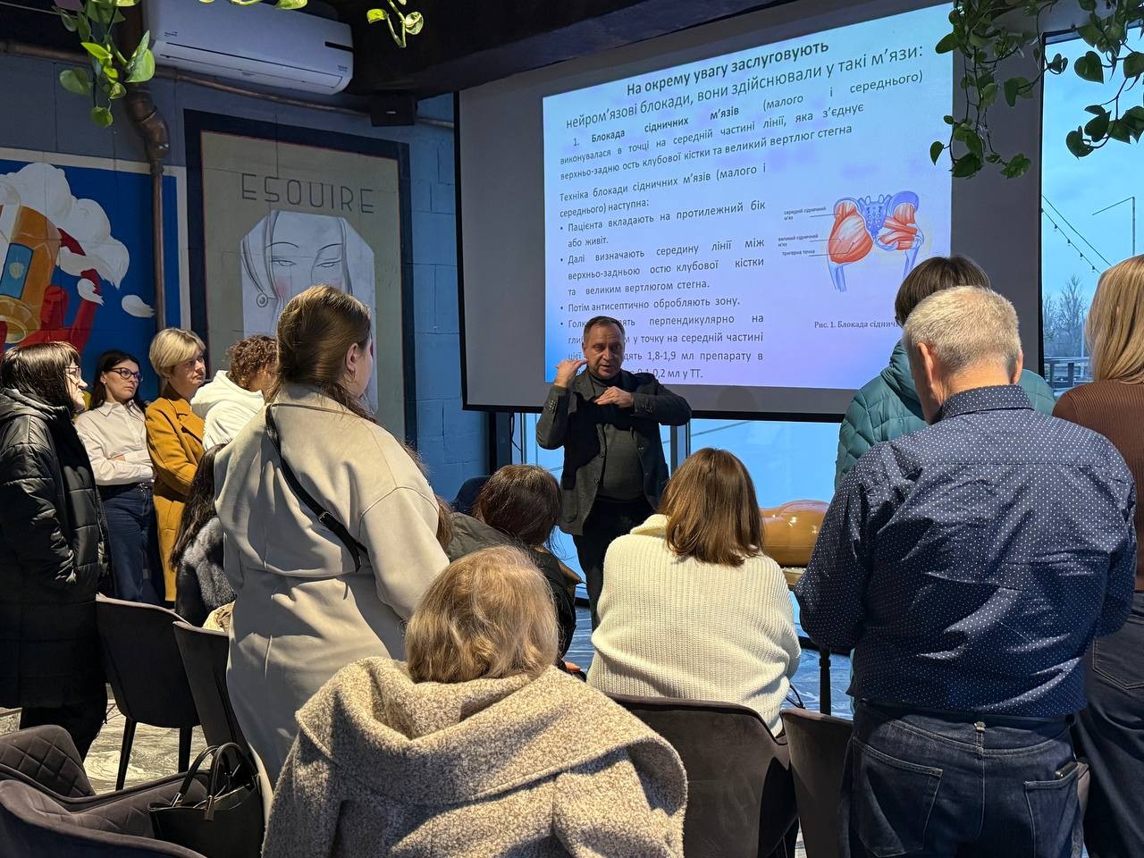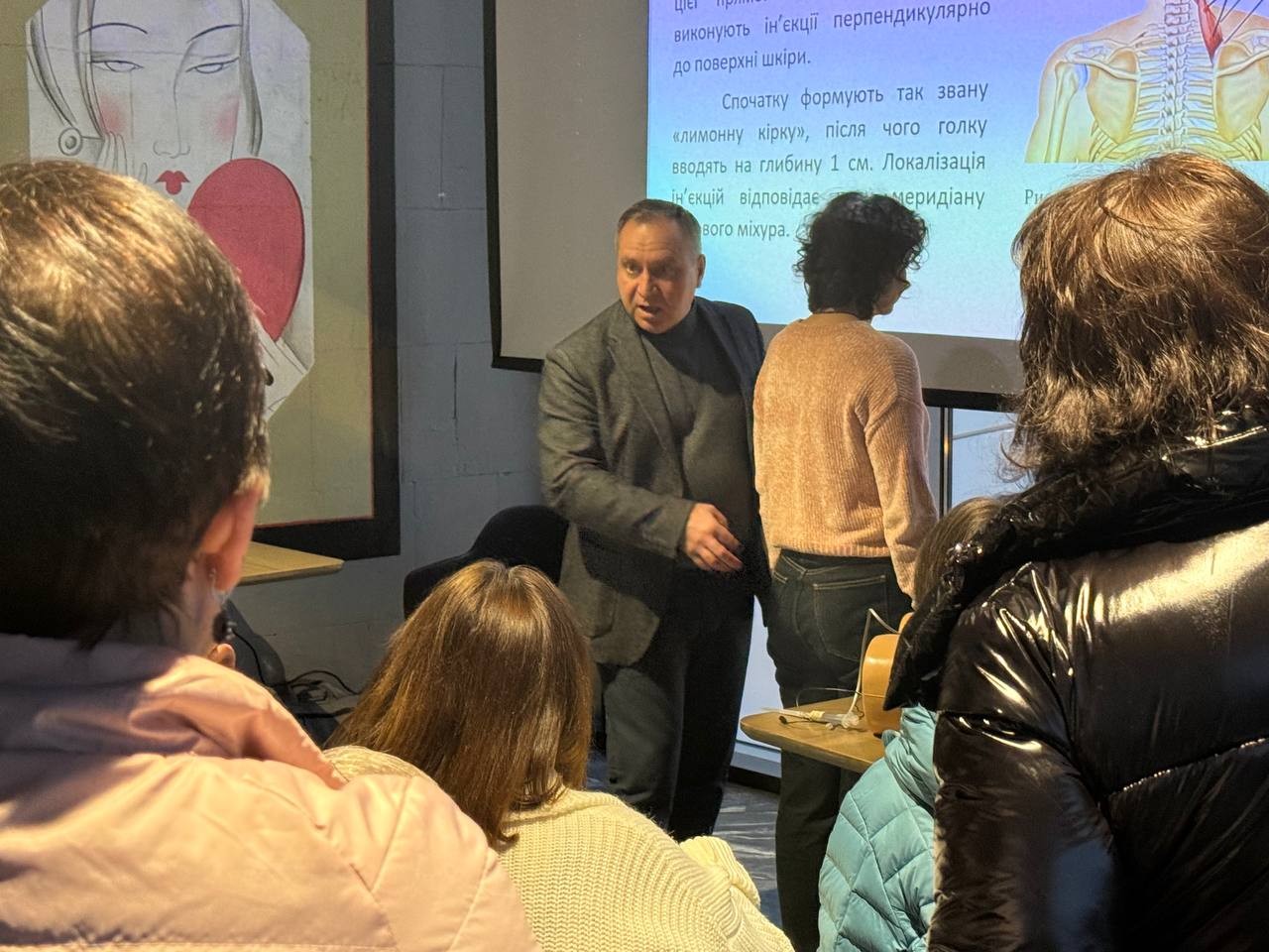 Практична частина включала демонстрацію методики виявлення тригерних точок, техніки точного введення препаратів та рекомендації щодо післяпроцедурного ведення пацієнтів.