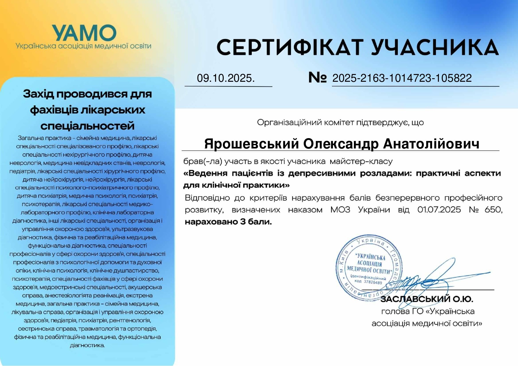 Є автором мультимодальних методик лікування різних видів больових синдромів в неврології та ортопедії.